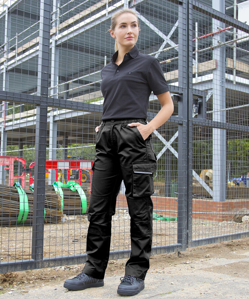 Breathable. Windproof. Comfort fit. Ready to brand. Durable and hardwearing. Co-ordinated Workguard range. Fantastic price point: price winner. Expansion waistband allows for adjustable fit and draught protection. Tear release pocket system with reflective trim. Knee pad pockets with articulated stitching. 2' hem for length adjustment. Twin-needle stitched seams. Zip fly with button fastening. Expansion waistband. Critical stress bar tacking. Deep side pockets. Hammer loop. Belt loops.