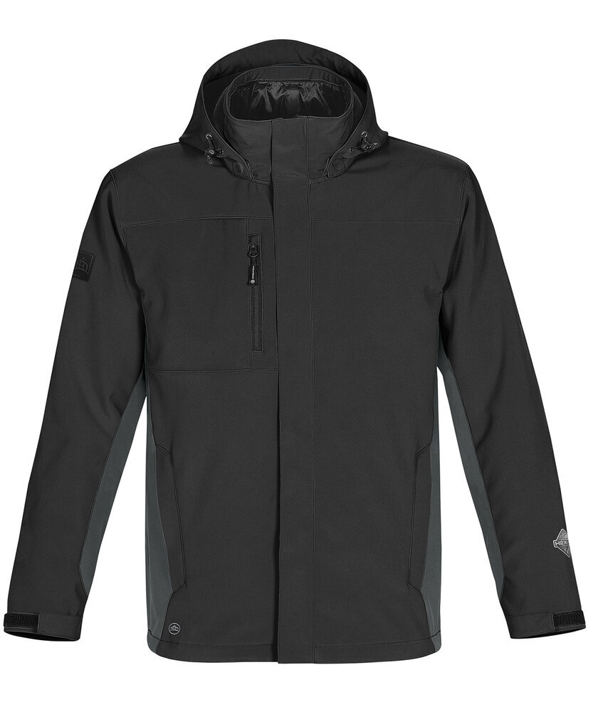 Designed to optimize versatility and function, this H2XTREME® two-tone 3-in-1 system jacket offers plenty of warmth and Stormtech technology for superior waterproof/breathable protection. Central front zipper. Articulated adjustable hood. Welded adjustable cuffs. Detachable hood. Adjustable hem. Dropped back. Zippered pockets. Internal media port. External media port. Embroidery access. Brushed Tricot neck warmer. Brushed Tricot hand warmer pockets. Brushed Tricot chin saver. Full-length storm flap and snap closure. Removable Polyfill liner at contrast zipper.